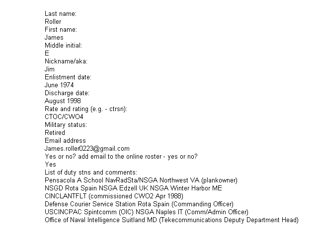 Robertson, James C. | Robbie | CTO2 | Sep 1971 | - | - | Sep 1975 | former CTT2 | |