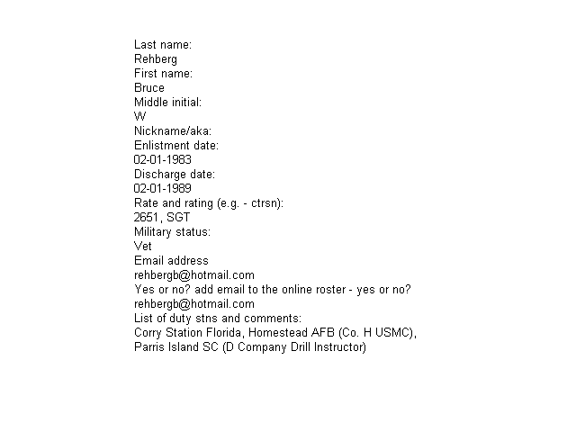 | Ritenour Jr, Dail D. | Rit | CPL(USMC) | Nov 1983 | - | - | Nov 1989 | - | |