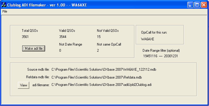 DXbase 2007 ClubLog ADI Filemaker program Designed and made by Joe WA6AXE